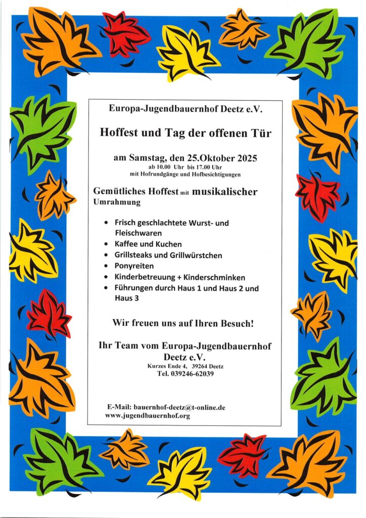 Hier könnt ihr Freundschaften knüpfen, Neues lernen und unvergessliche Momente sammeln. Der Europa-Jugendbauernhof Deetz ist mehr als nur ein Ort – es ist ein Erlebnis, das verbindet und inspiriert.