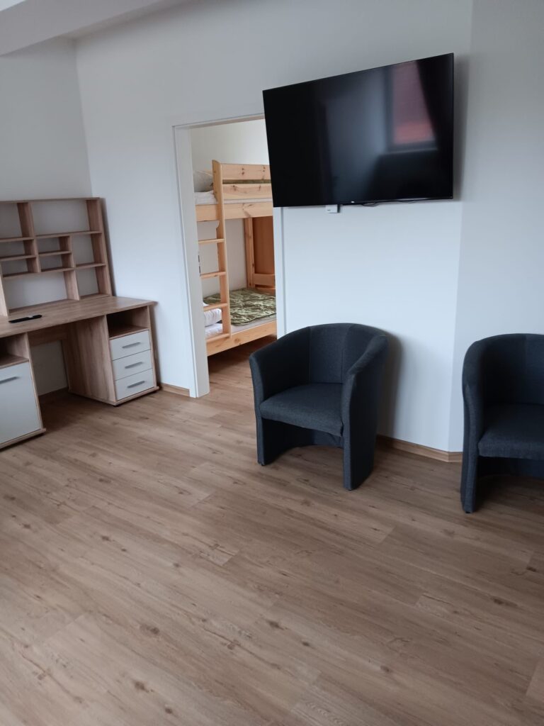 | Büros | Fernsehraum, 4 Duschen und 4 WCs | 2 Betreuerzimmer mit zwei Betten, eigener Dusche und WC |